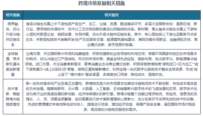 跨境冷链物流是指将易腐食物、医药产物等需要正在低温下保留的货色,通过陆运、海运、空运等体例,从一个国度的出产地运输到另一个国度的发卖地或消费地的过程。跨境冷链物流正在食物、医药等产物平安和新颖度方面具有至关主要的感化,可以或许确保货色正在整个运输过程中连结不变的温度,降低损耗,提高产物合作力。跨境电商是我国外贸成长的有生力量,也是国际商业成长的主要趋向。2021年,国务院常务会议即要求“积极鞭策海外仓成长,激励保守外贸企业、跨境电商和物流企业等参取海外仓扶植”;2023年,国务院办公厅印发《关于鞭策外贸稳规模优布局的看法》提出“鞭策跨境电商健康持续立异成长”等;2023岁尾召开的地方经济工做会议强调,扩大高程度对外。要加速培育外贸新动能,巩固外贸外资根基盘,拓展两头品商业、办事商业、数字商业、商务部、国度成长委、财务部等九部分结合发布的《关于拓展跨境电商出口推进海外仓扶植的看法》(下称《看法》)推出15条行动,旨正在拓展跨境电商出口,优化海外仓结构,加速培育外贸新动能。别的,上海、广东等地域近年来也连续出台了关于跨境电商和海外仓的一系列政策。近年跨境电商做为迅猛成长的一种贸易模式,借帮利好政策的鞭策、互联网的便当性和全球物流的高效性打破地区,中国“买全球、卖全球”方面劣势和潜力被持续,进出口总额快速增加。2024年我国跨境电商进出口总额达到2。63万亿元,同比增加11。0%,占同期我国货色商业进出口总值的6%。跟着跨境电商的兴旺成长,也进一步凸显了冷链物流的价值。