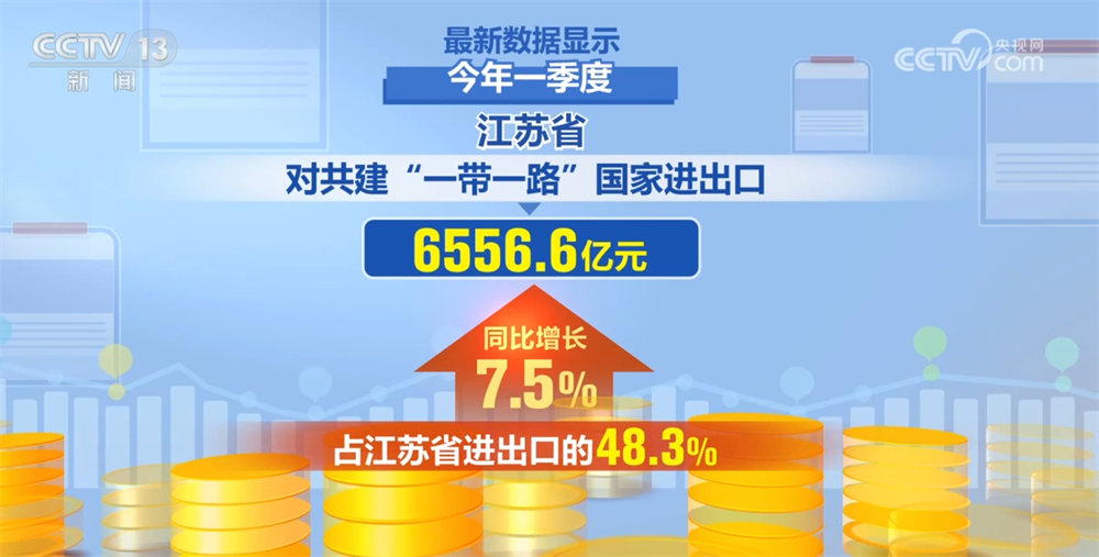 最新数据显示,本年一季度,江苏省对共建“一带一”国度进出口6556。6亿元,同比增加7。5%,占江苏省进出口的48。3%。
